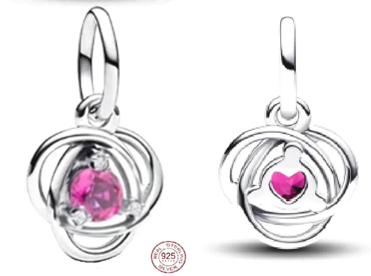 Charm Sterlingové stříbro 925 Růžový kruh věčnosti říjen, přívěsek na náramek symbol