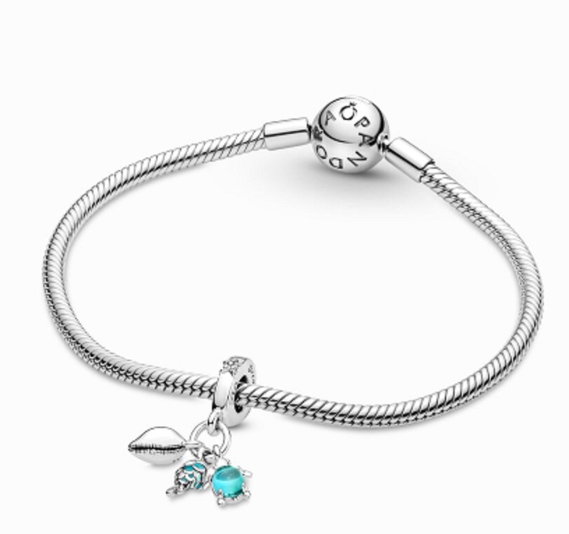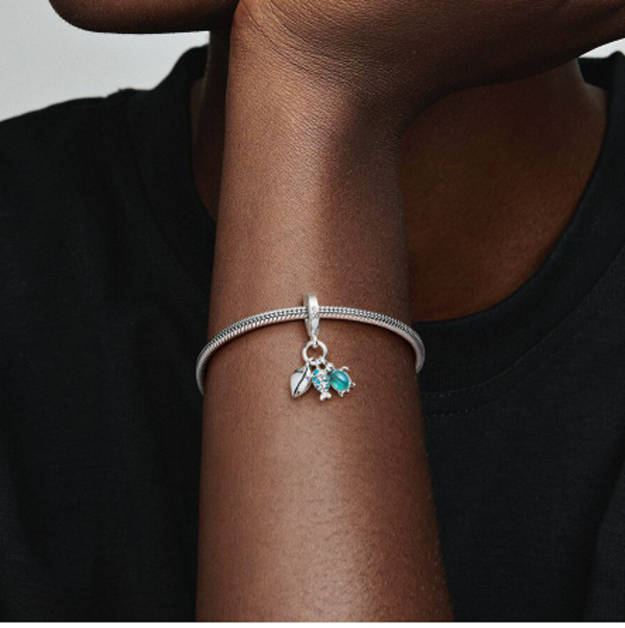 Charm Sterlingové stříbro 925 Ryba, mořská želva a lastura 3v1, přívěsek na náramek moře