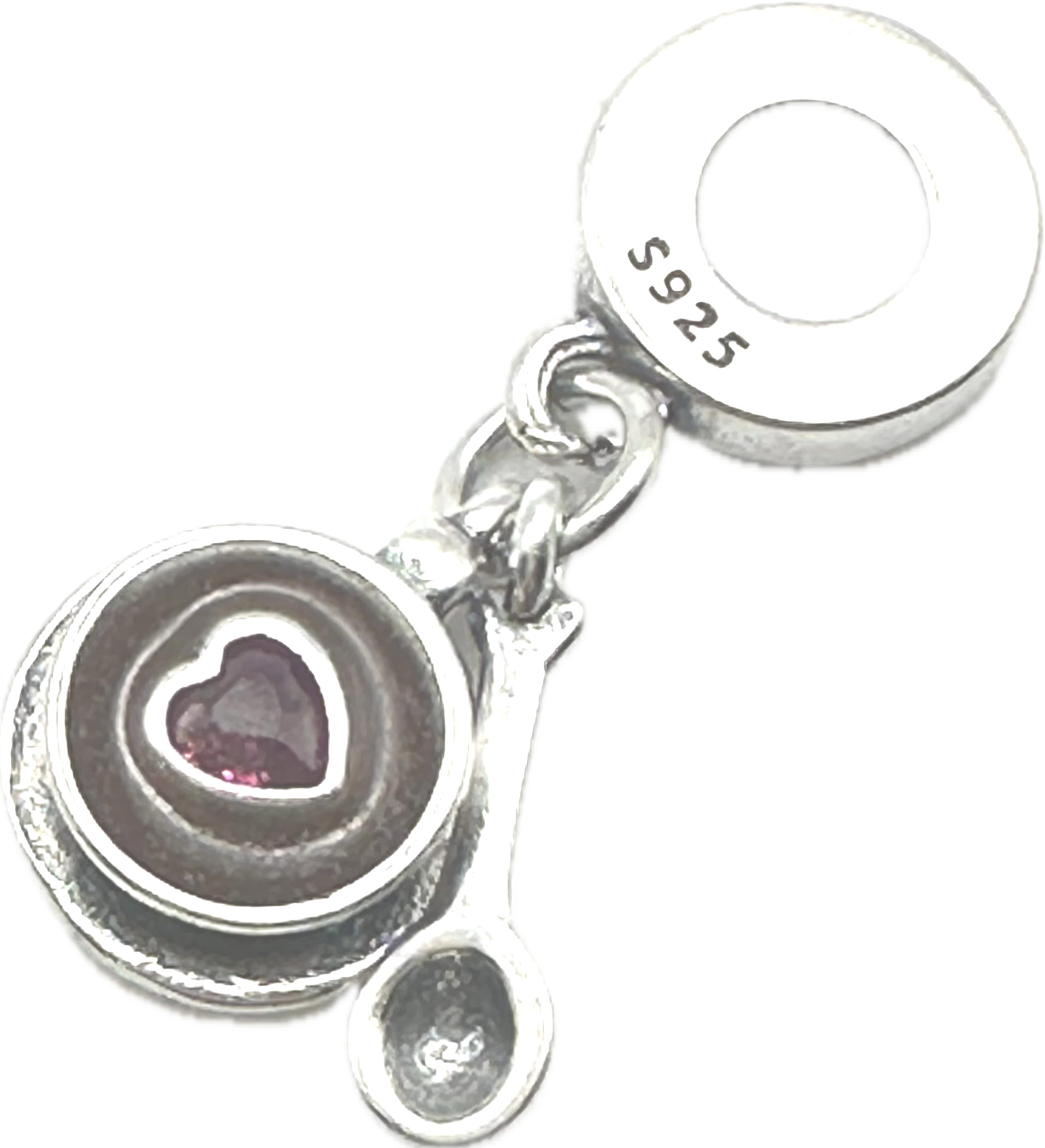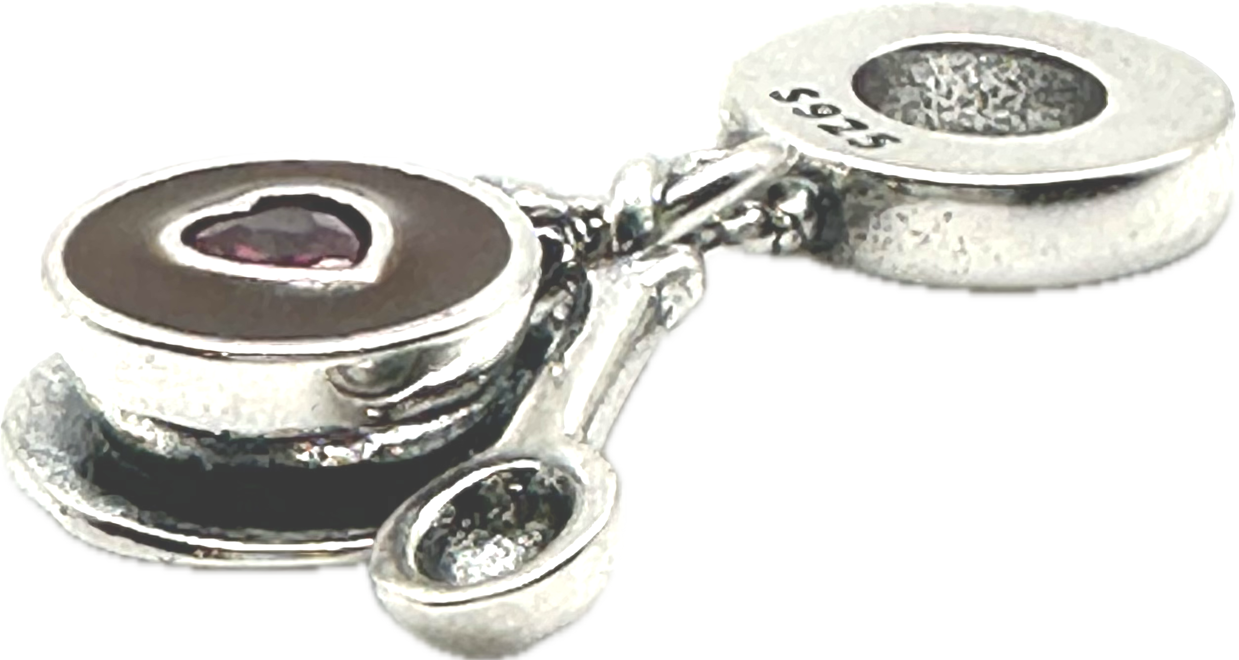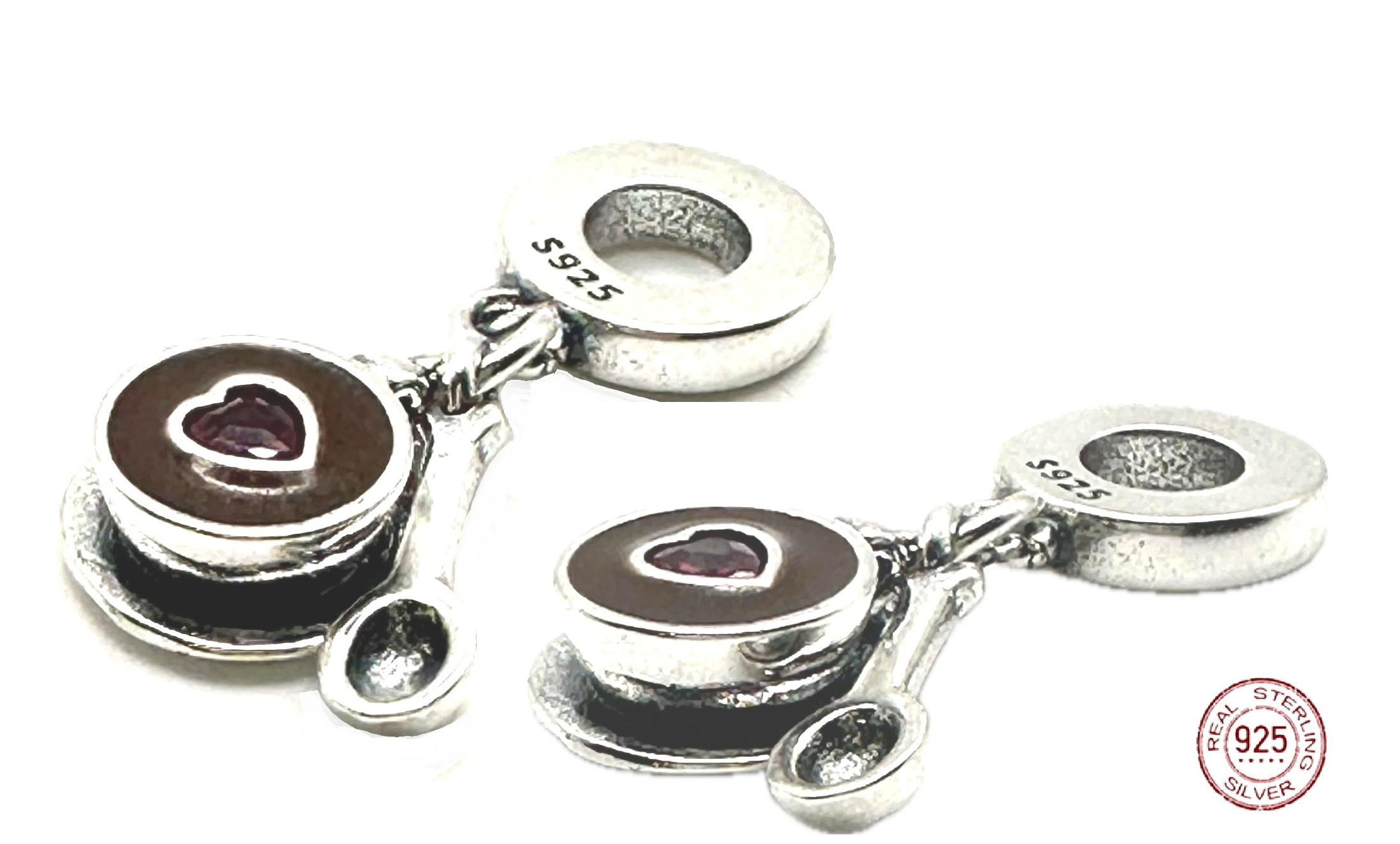 Charm Sterlingové stříbro 925 Šálek kávy a lžíce 2v1, přívěsek na náramek jídlo a pití