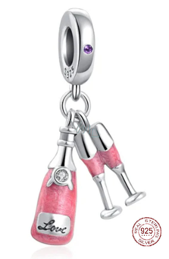 Charm Sterlingové stříbro 925 Sekt + 2 sklenice, přívěsek na náramek láska