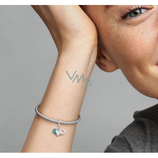 Charm Sterlingové stříbro 925 Sestra čtyřlístek pro štěstí, srdce a podkova 3v1, přívěsek na náramek rodina
