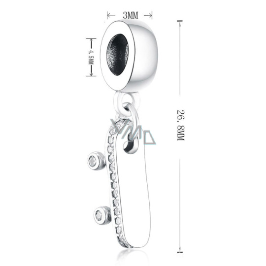 Charm Sterlingové stříbro 925 Skateboard, přívěšek na náramek sport