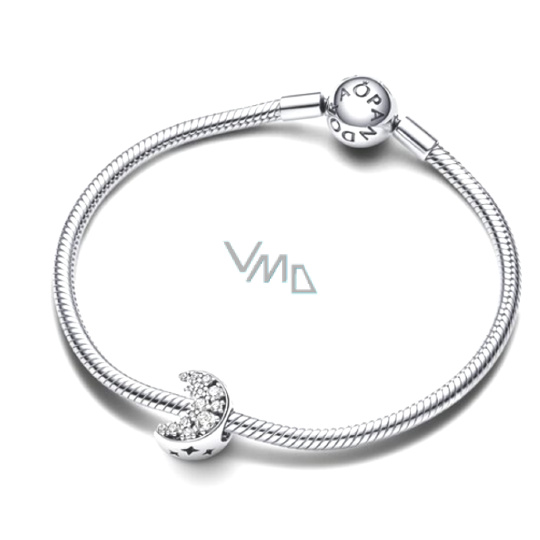 Charm Sterlingové stříbro 925 Slunce a půlměsíc s čirou kubickou zirkonií, korálek na náramek vesmír