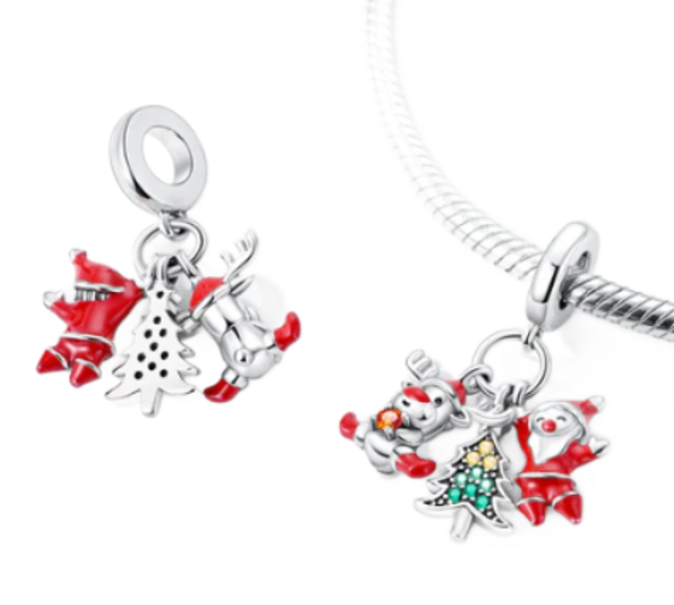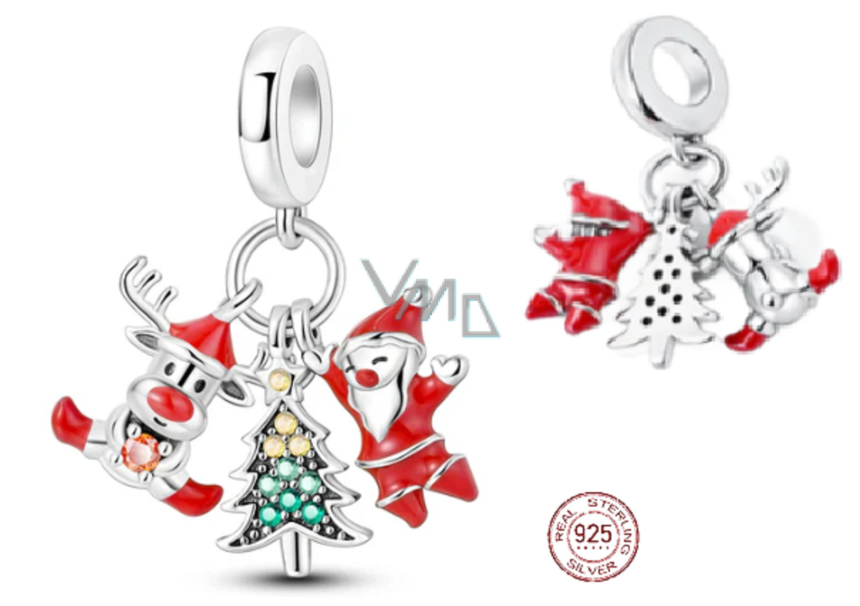 Charm Sterlingové stříbro 925 Sob, mikuláš a stromek 3v1, přívěsek na náramek Vánoce