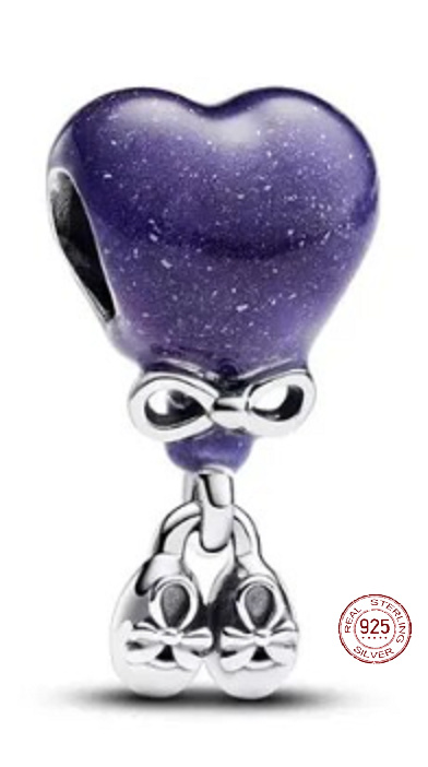 Oživte svůj vzhled fialovým kovovým korálkem ve tvaru srdce. Je ručně vyrobený ze stříbra 925 Sterling Silver a zdoben ručně nanášeným transparentním fialovým smaltem. Doplněn je mašličkou a botičkami a potěší každou maminku. Nejlépe vynikne na vašem náramku v kombinaci s minimalistickými přívěsky, případně jej noste s jinými barevnými šperky pro živý a dramatický vzhled.