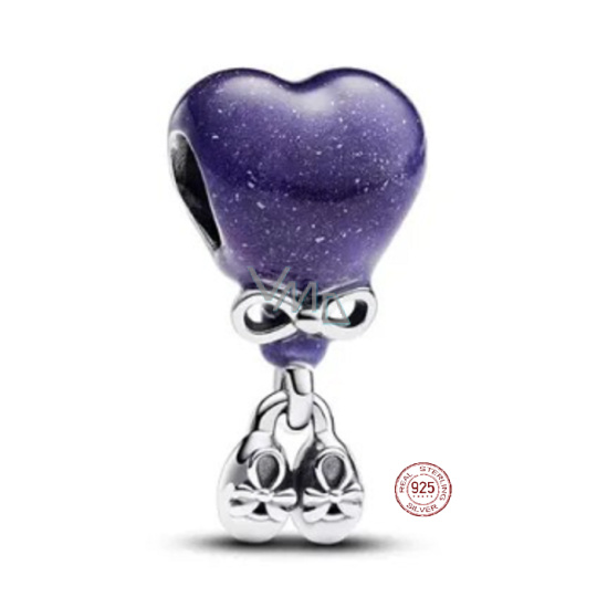 Oživte svůj vzhled fialovým kovovým korálkem ve tvaru srdce. Je ručně vyrobený ze stříbra 925 Sterling Silver a zdoben ručně nanášeným transparentním fialovým smaltem. Doplněn je mašličkou a botičkami a potěší každou maminku. Nejlépe vynikne na vašem náramku v kombinaci s minimalistickými přívěsky, případně jej noste s jinými barevnými šperky pro živý a dramatický vzhled.