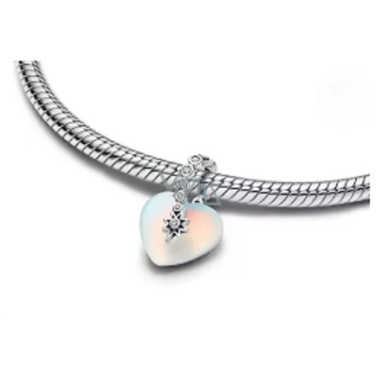 Charm Sterlingové stříbro 925 Srdce s hvězdou a opálem, symbol lásky a světla, přívěsek na náramek láska