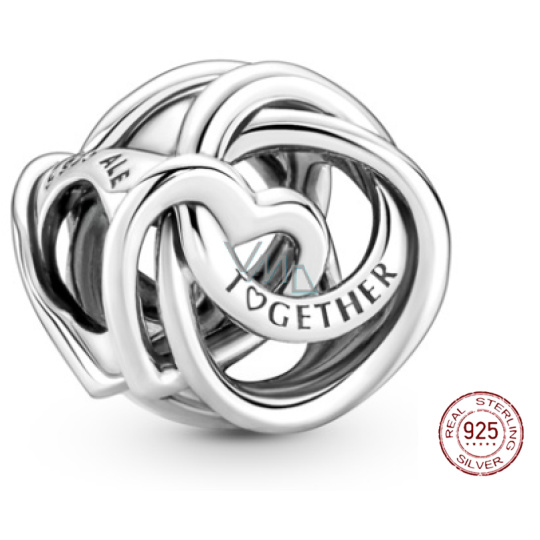 Charm Sterlingové stříbro 925 Srdce v kroužcích - spolu, korálek na náramek láska