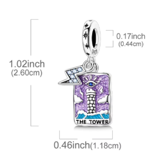 Charm Sterlingové stříbro 925 Tarot karta – Věž The Tower, přívěsek na náramek symbol