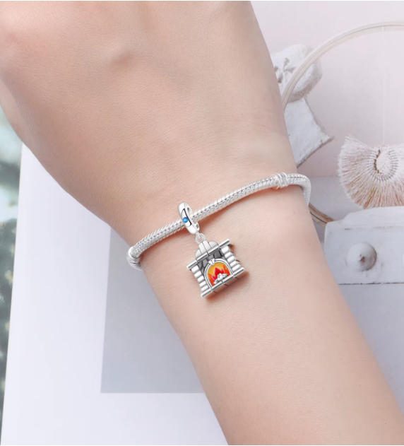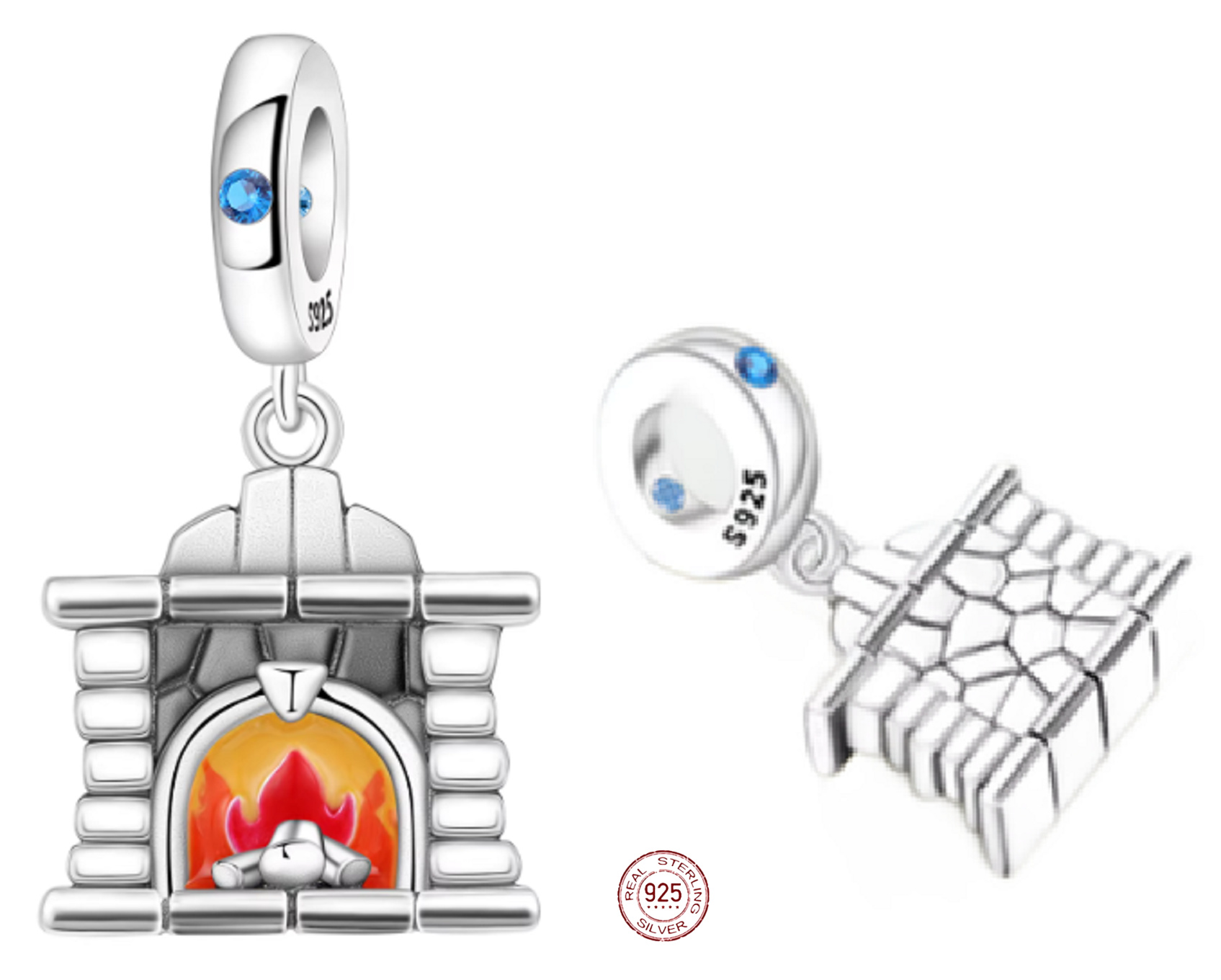 Charm Sterlingové stříbro 925 Teplo domova, krb – klid, bezpečí a návrat k sobě přívěsek na náramek rodina