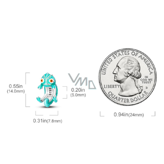 Charm Sterlingové stříbro 925 Chameleon, mění barvu na teplo, korálek na náramek zvíře