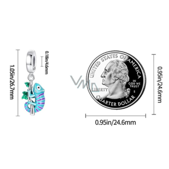Charm Sterlingové stříbro 925 Chameleon na větvičce, mění barvu na teplo, přívěsek na náramek, zvíře