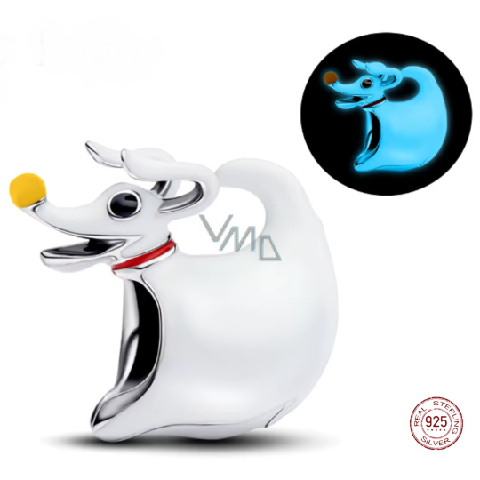 Charm Sterlingové stříbro 925 Tim Burton, Noční můra před Vánoci Zero – kouzelný pejsek s dýňovým čumáčkem svítí ve tmě, korálek na náramek film
