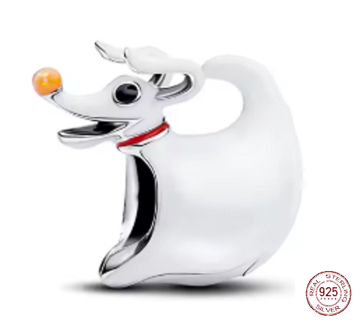 Rozkošný duchovský pejsek Zero z kultovního filmu Tima Burtona Noční můra před Vánoci přichází v podobě originálního přívěsku ze stříbra 925. Jeho průsvitné tělíčko, červený obojek a ikonický oranžový dýňový čumáček z něj dělají neodolatelný šperk pro všechny fanoušky temné pohádkové atmosféry.