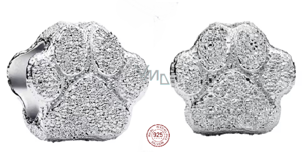 Charm Sterlingové stříbro 925 Tlapička lásky - amulet věrnosti a oddanosti, korálek na náramek zvíře