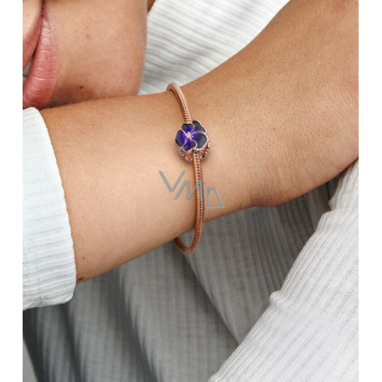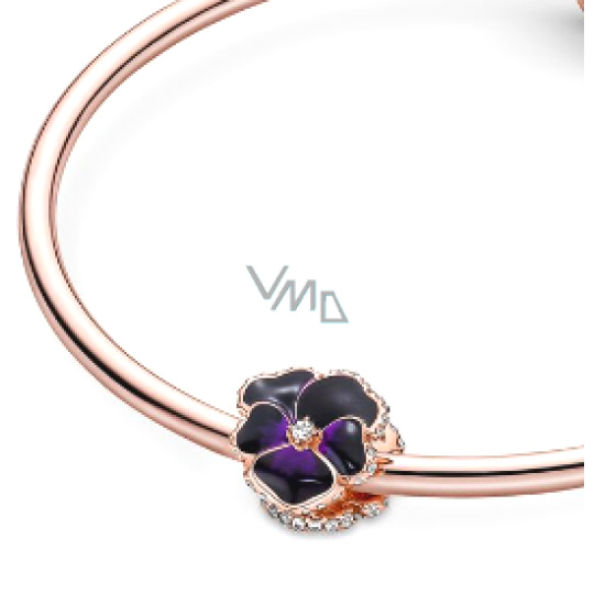 Charm Sterlingové stříbro 925 Tmavě fialová maceška, korálek na náramek květina