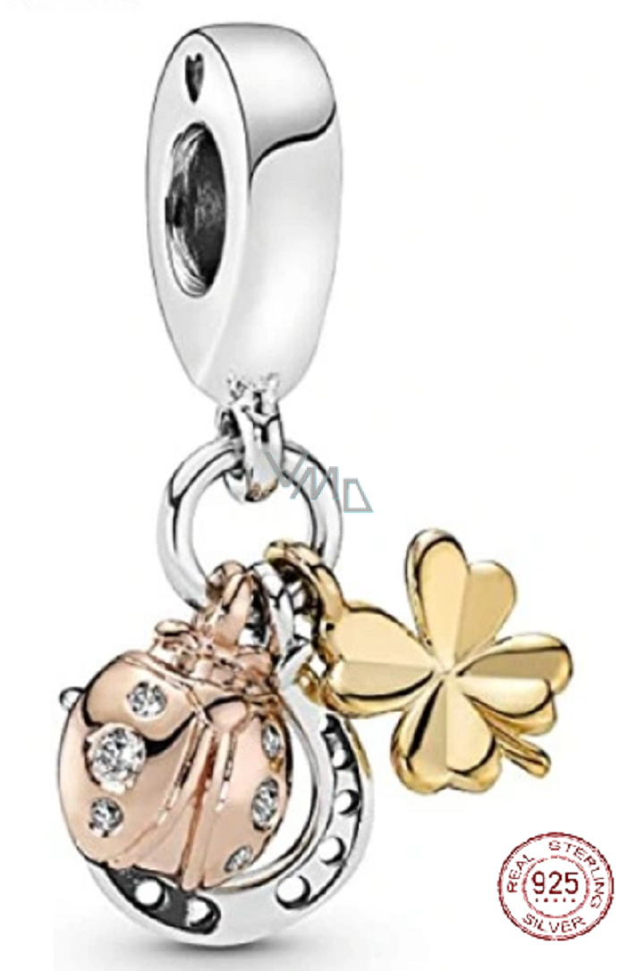 Charm Sterlingové stříbro 925 Trio štěstí, podkova, čtyřlístek, beruška 3v1, přívěsek na náramek, zvíře