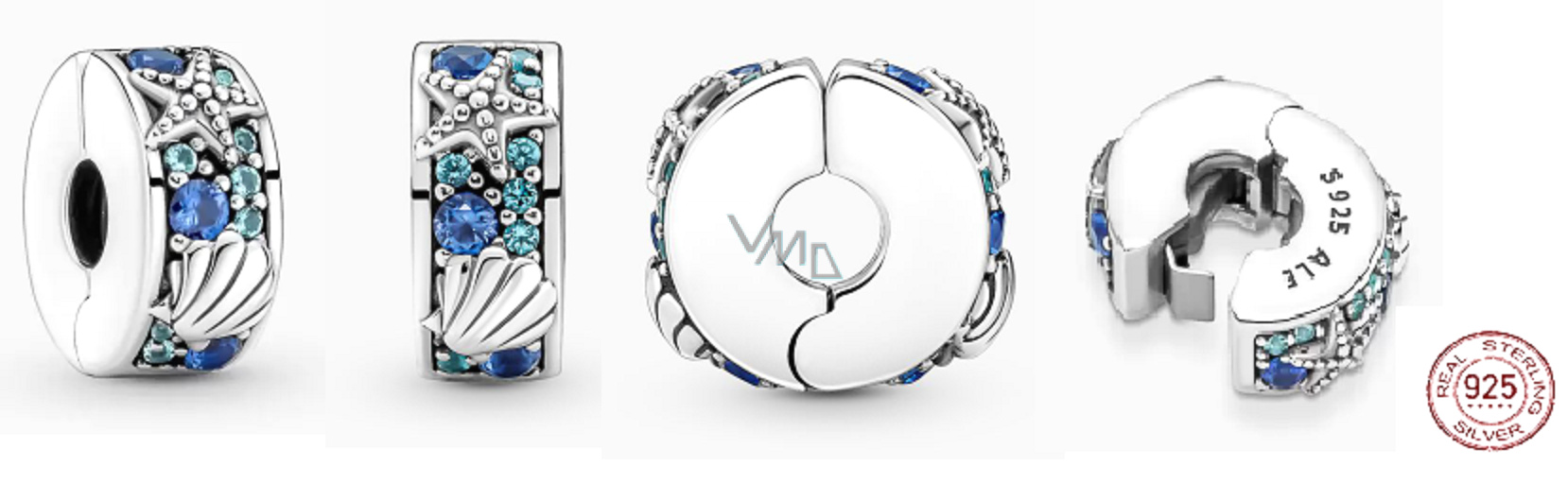 Charm Sterlingové stříbro 925 Tropická hvězdice a mušle, stopper, klipový korálek na náramek moře