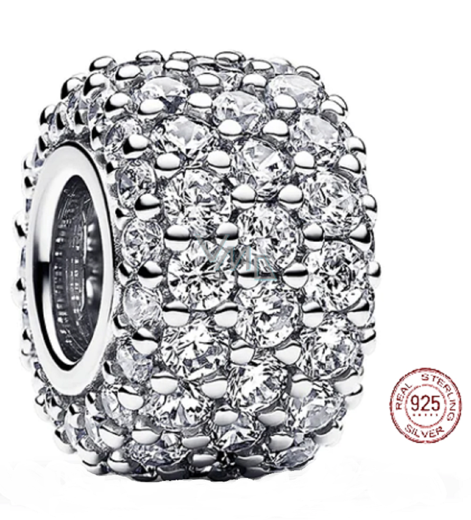 Charm Sterlingové stříbro 925 Třpitivé kouzlo s čirou zirkonií, pavé korálek na náramek symbol