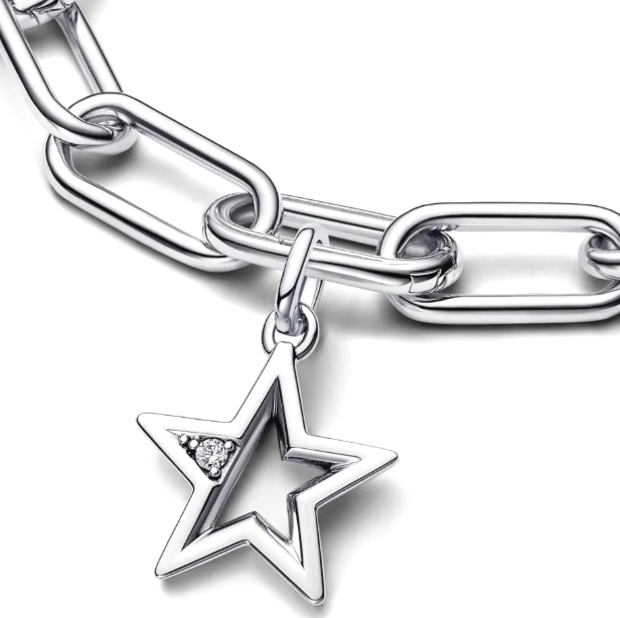 Tento stříbrný hvězdný přívěsek s profilem ve tvaru hranolu obsahuje v jednom z pěti hrotů vsazený třpytivý kámen. Na zadní straně jsou mikrokuličky, vyvýšená čára a otvor ve tvaru trojúhelníku, kterým je kámen vidět. Darujte toto medailonové kouzlo někomu, kdo vám dává Hvězdy do očí, nebo ho noste jako připomínku, že jste hvězdou svého vesmíru.