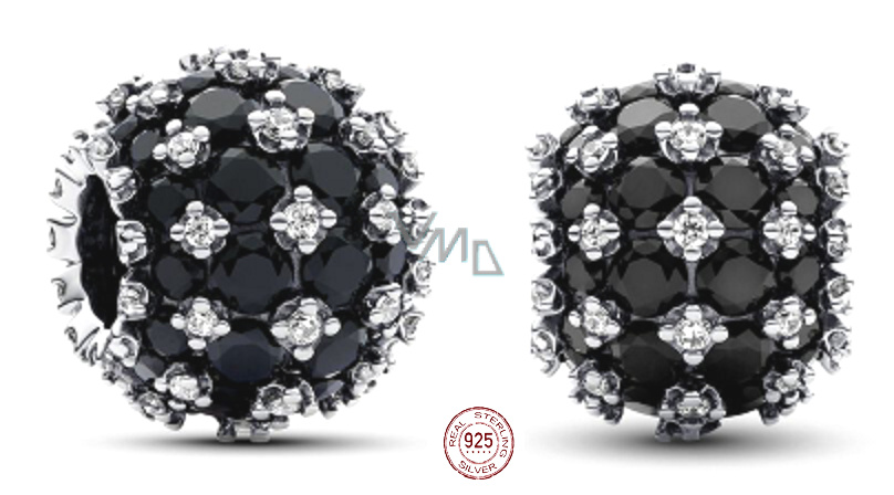 Charm Sterlingové stříbro 925 Třpytivé kulaté černé kouzlo Pavé, korálek na náramek symbol