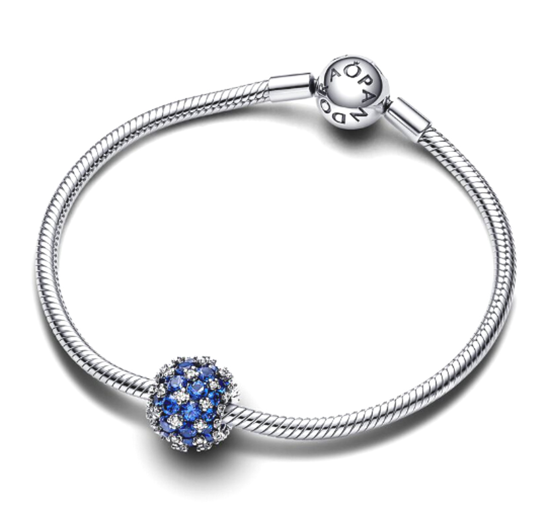 Charm Sterlingové stříbro 925 Třpytivé kulaté modré kouzlo Pavé, korálek na náramek symbol