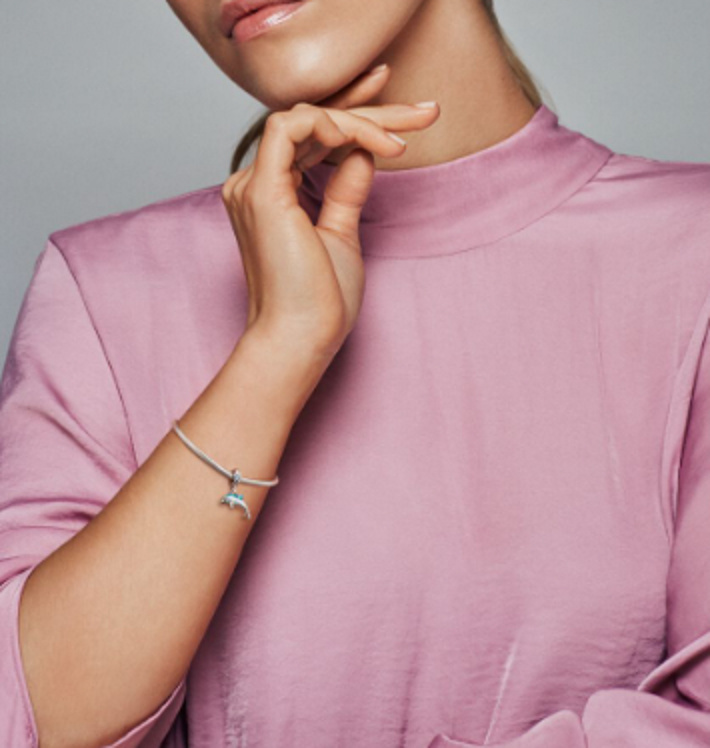 Charm Sterlingové stříbro 925 Třpytivý delfín, přívěsek na náramek moře