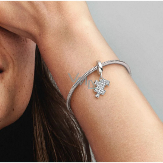 Charm Sterlingové stříbro 925 Třpytivý dílek puzzle, přívěsek na náramek přátelství
