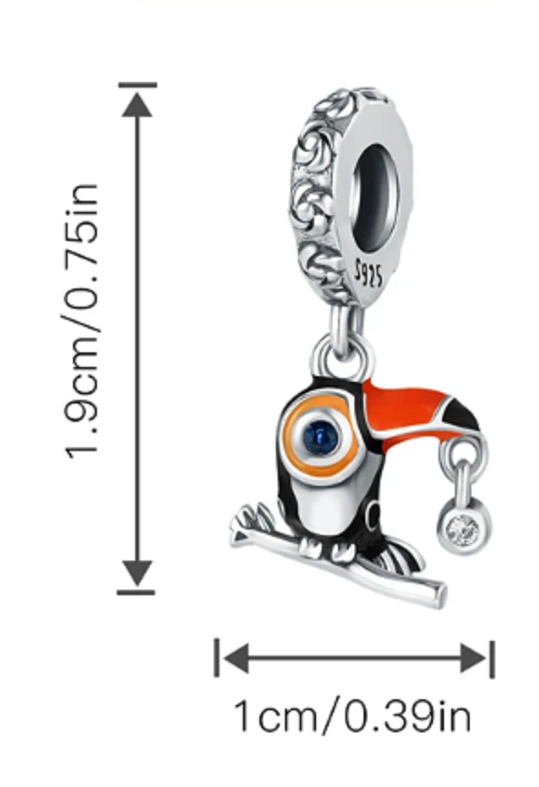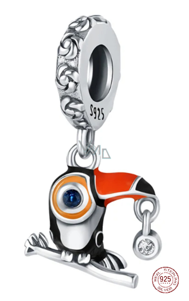 Charm Sterlingové stříbro 925 Tukan přívěsek na náramek zvíře