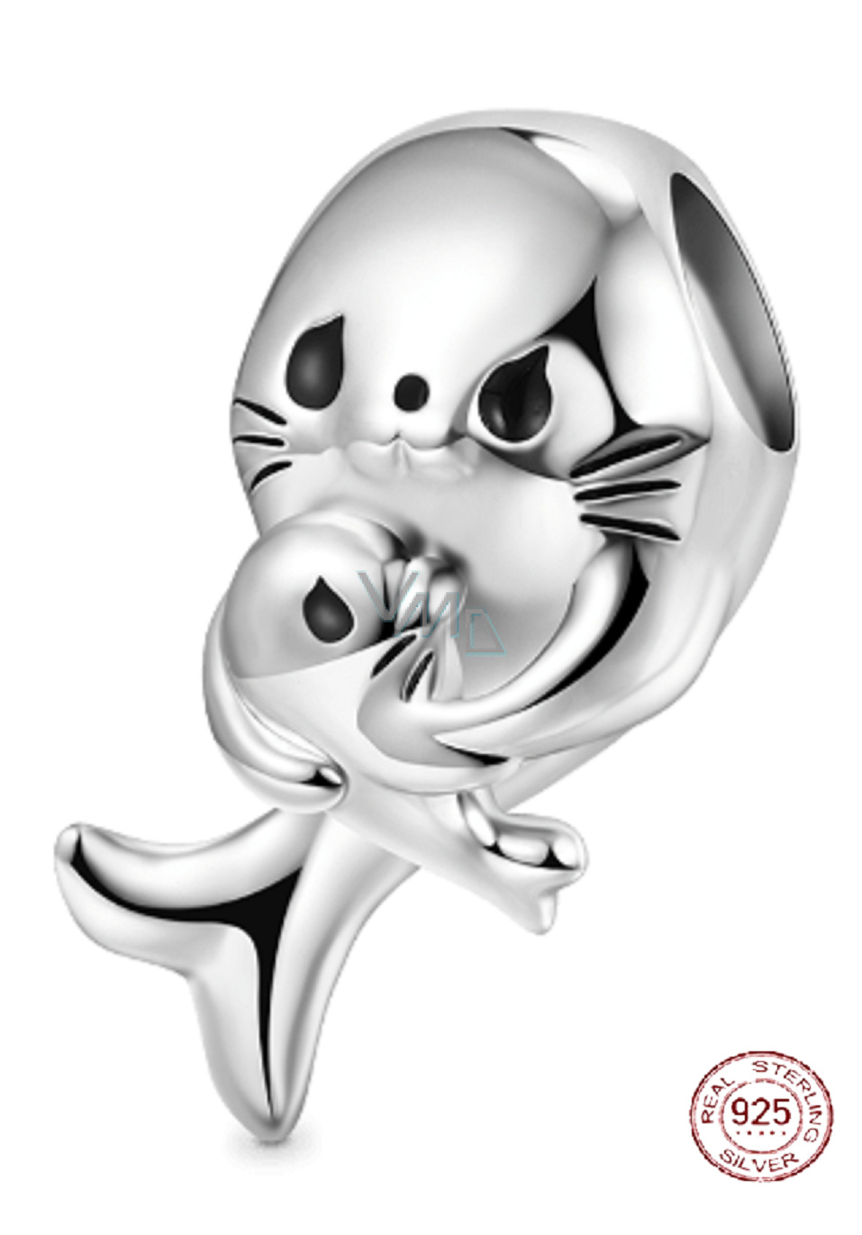 Charm Sterlingové stříbro 925 Tuleň s miminkem - mateřská láska, korálek na náramek zvíře