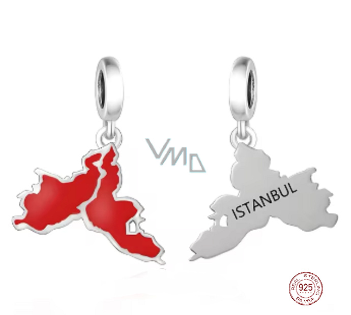 Charm Sterlingové stříbro 925 Turecko, Istambul vlajka - houpající se mapa, přívěsek na náramek cestování