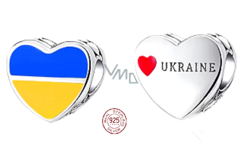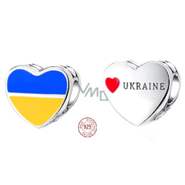 Charm Sterlingové stříbro 925 Ukrajina vlajka - srdce, korálek na náramek cestování