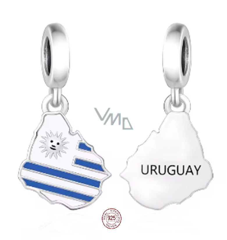 Charm Sterlingové stříbro 925 Uruguay vlajka - houpající se mapa, přívěsek na náramek cestování