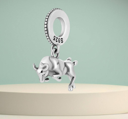 Visací přívěsek s býkem. Býci symbolizují sílu, odhodlání a stabilitu.