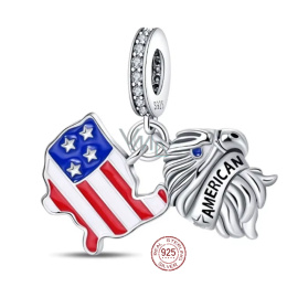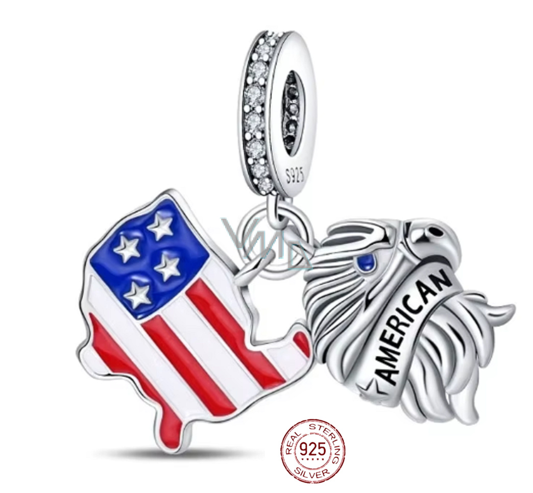 Charm Sterlingové stříbro 925 USA vlajka - houpající se mapa + symbol - orel, přívěsek na náramek cestování