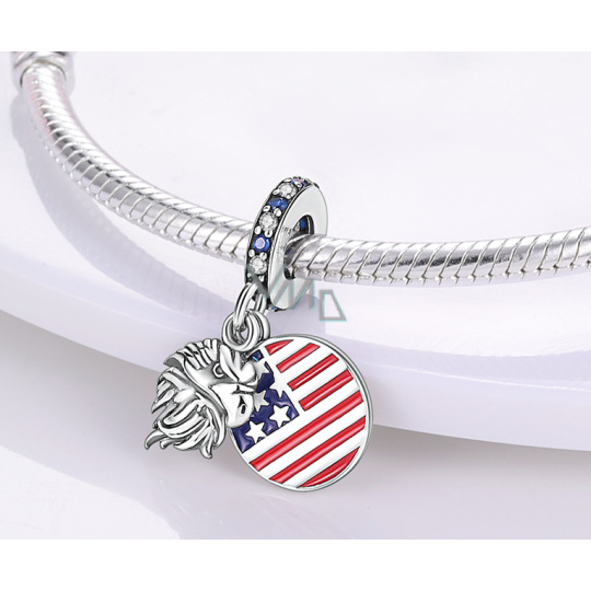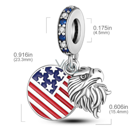 Charm Sterlingové stříbro 925 USA vlajka + orel, 2v1 přívěsek na náramek cestování