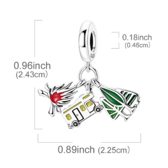 Charm Sterlingové stříbro 925 Vanlife – svoboda na kolech, příroda a vlastní tempo, 3v1 přívěsek na náramek cestování