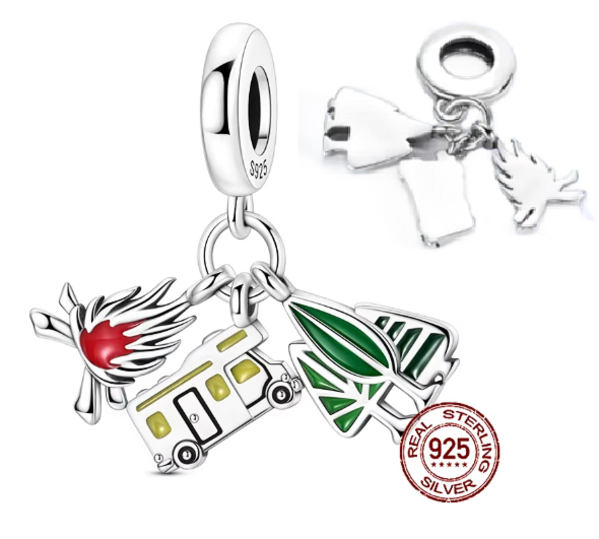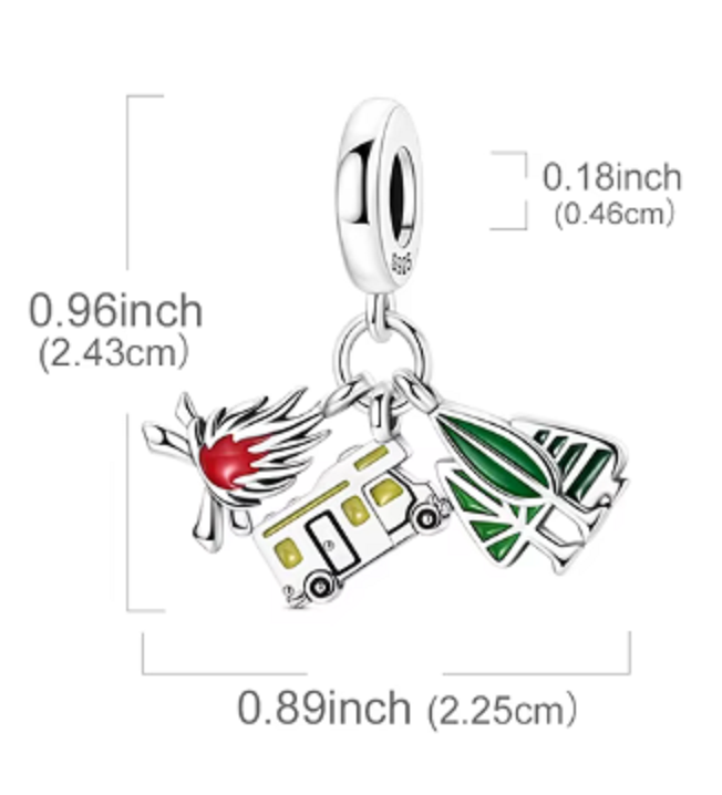 Charm Sterlingové stříbro 925 Vanlife – svoboda na kolech, příroda a vlastní tempo, 3v1 přívěsek na náramek cestování