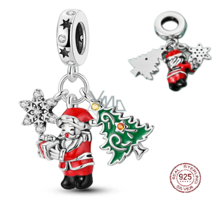 Charm Sterlingové stříbro 925 Vánoční 3v1 Santa, stromek a hvězda, přívěsek na náramek Vánoce