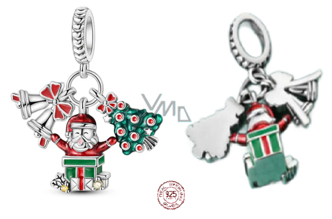 Charm Sterlingové stříbro 925 Vánoční 3v1 Zvonky, Santa, stromek, přívěsek na náramek Vánoce