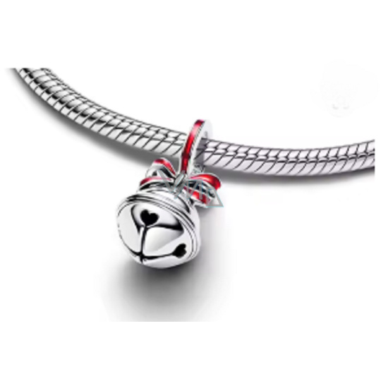Stříbro přívěsek 925 Vánoční rolnička s červenou mašlí – Kouzlo Vánoc v jednom šperku