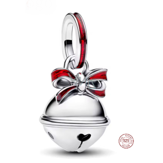 Charm Sterlingové stříbro 925 Vánoční rolnička s červenou mašlí, přívěsek na náramek vánoce