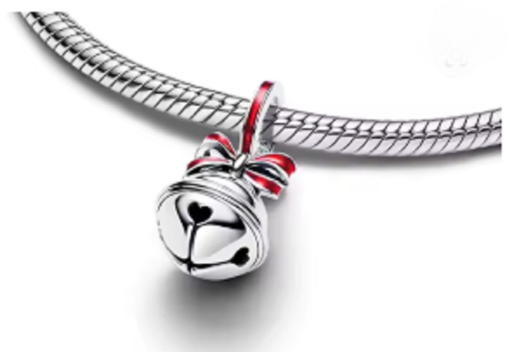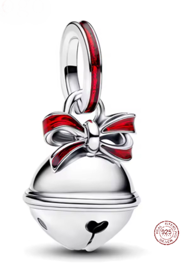 Charm Sterlingové stříbro 925 Vánoční rolnička s červenou mašlí, přívěsek na náramek vánoce