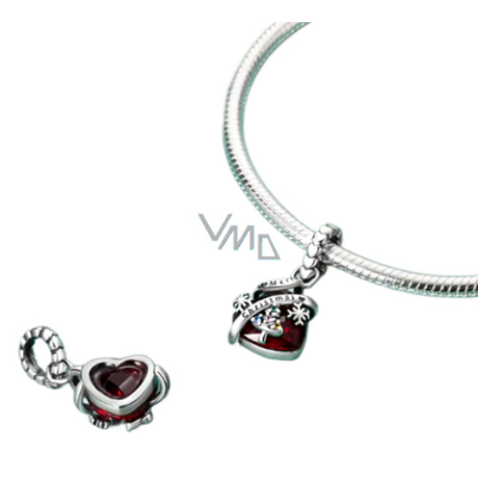 Charm Sterlingové stříbro 925 Vánoční srdce, přívěsek na náramek Vánoce