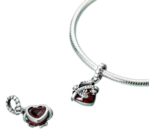 Charm Sterlingové stříbro 925 Vánoční srdce, přívěsek na náramek Vánoce