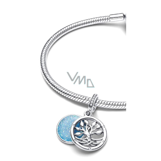 Charm Sterlingové stříbro 925 Věčná pouta zářící ve tmě, strom a nekonečno, luminozní přívěsek na náramek rodina