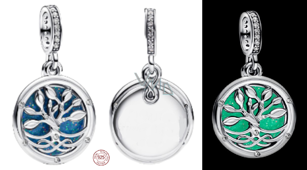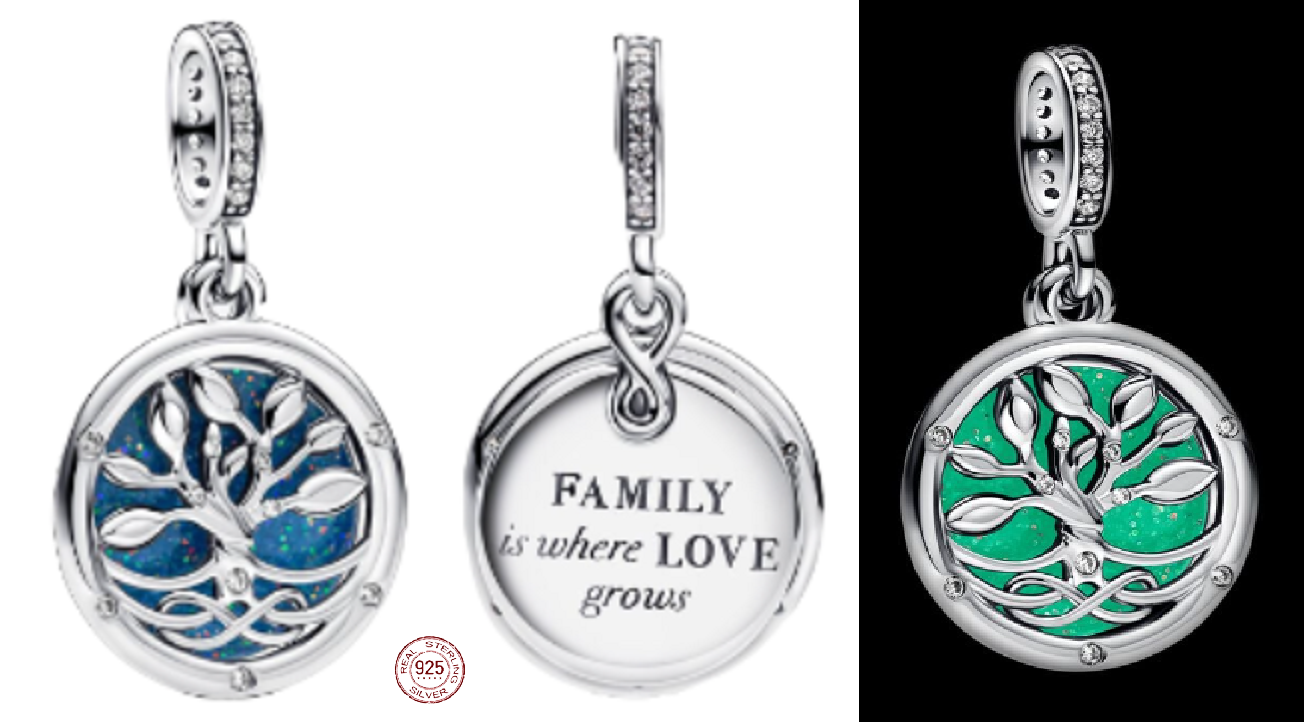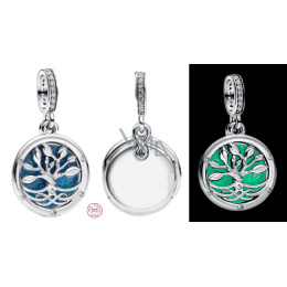 Charm Sterlingové stříbro 925 Věčná pouta zářící ve tmě, strom a nekonečno, luminozní přívěsek na náramek rodina