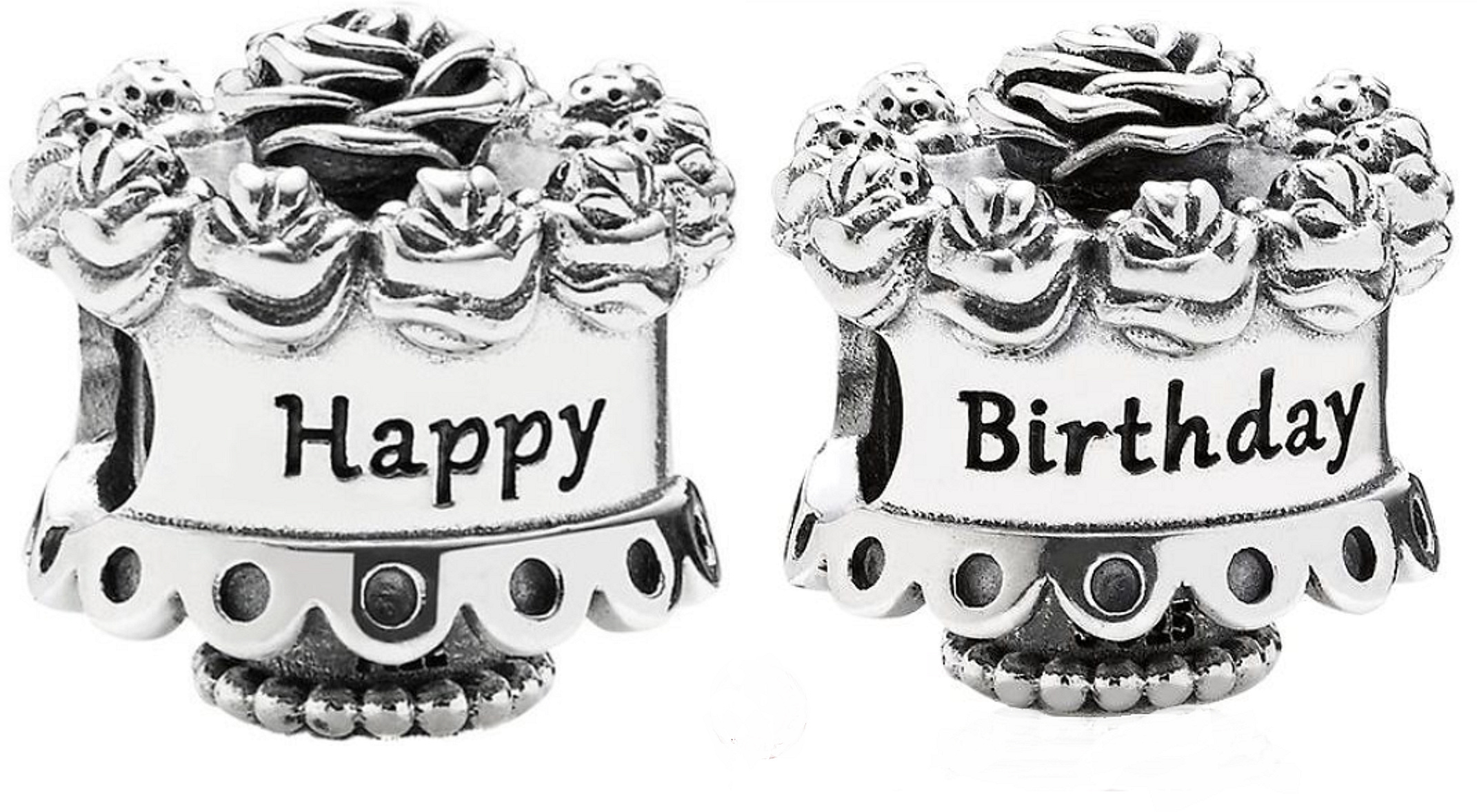 Oslavte narozeniny s přívěskem na narozeninový dort 925 Sterling Silver s nápisem „Happy Birthday“. Dort propracovaný do nejmenších detailů spočívá na vyvýšeném podstavci, který reprodukuje krajkovou práci, a nahoře je ozdoben květinami. Dokonalý šperk jako dárek.
