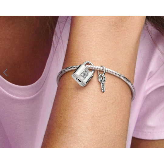 Charm Sterlingové stříbro 925 Visací zámek a klíček 2v1, přívěsek na náramek láska
