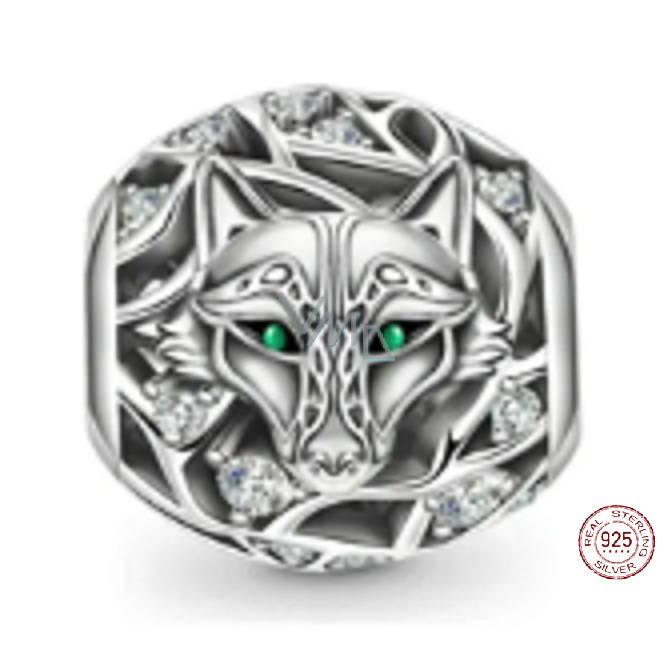 Charm Sterlingové stříbro 925 Vlk, zelené oči, korálek na náramek zvíře